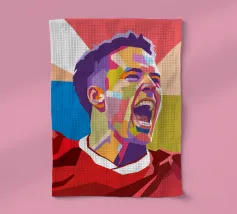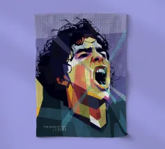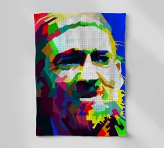 WPAP (Wedha's Pop Art Portrait) è uno stile artistico geometrico, vibrante e colorato che enfatizza gli angoli acuti e i contrasti di colore. Un ritratto di Sinéad O'Connor in stile WPAP presenterebbe la sua sorprendente struttura facciale con forme spigolose e taglienti in colori vivaci e contrastanti. La sua caratteristica testa rasata e il suo sguardo intenso sarebbero accentuati da audaci motivi geometrici. L'opera d'arte catturerebbe la sua profondità emotiva e il suo spirito ribelle, riflettendo la sua eredità di musicista e attivista senza paura.