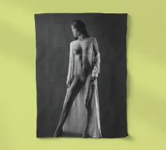 Uno scatto di nudo artistico di una giovane donna in vestaglia bianca