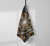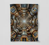 Una straordinaria composizione architettonica che mostra un tunnel simmetrico di finestre dal design intricato, dettagli ornamentali e accenti vivaci che convergono verso un punto di fuga luminoso. La prospettiva dinamica evidenzia la maestria artigianale e crea un'illusione di profondità infinita.