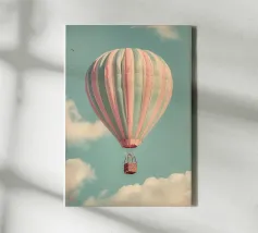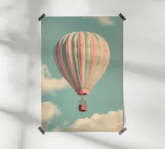 Delicato poster con una mongolfiera dai colori pastello su uno sfondo azzurro. Il morbido look vintage e il motivo onirico invitano a decollare e a sognare - perfetto per la cameretta, come regalo di nascita o come accento giocoso in salotto. Questo murale trasmette leggerezza, senso di avventura e la magia del momento.