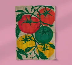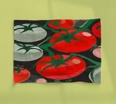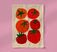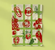 Il design allegro e colorato presenta un motivo di pomodori fresco e appetitoso.