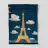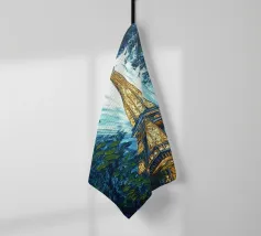 L'immagine mostra la Torre Eiffel in un cielo notturno di un blu intenso, con nuvole bianche, stelle scintillanti e una mezzaluna arancione. La torre stessa risplende nei toni caldi del giallo e dell'arancione e si staglia radiosa sullo sfondo scuro. Lo stile è chiaramente illustrativo e artistico, un misto di romanticismo sognante e colorazione espressiva. Ricorda un dipinto o un poster digitale che enfatizza l'atmosfera e lo stato d'animo piuttosto che la precisione realistica. Un gioco visivamente affascinante tra fantasia e punto di riferimento.