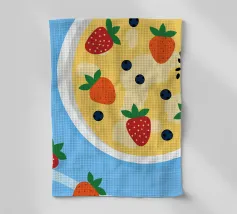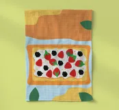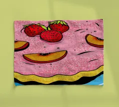 Una crostata di frutta dallo stile allegro, con colori vivaci e abbondanti guarnizioni di frutta.