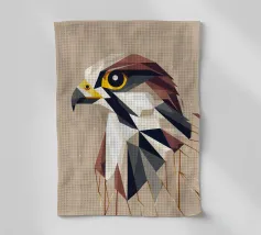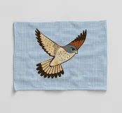 Illustrazione digitale di un gheppio maschio in volo. Sta cacciando una preda