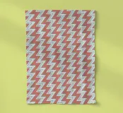 Quest'opera d'arte è un motivo a zigzag senza cuciture nei colori corallo e verde pesca. Questo disegno unico fonde un'estetica moderna con un fascino retrò. Perfetto per aggiungere un tocco di stile all'arredamento o agli accessori, dona un'atmosfera vivace e sofisticata a qualsiasi spazio. Date un'occhiata e rinfrescate il vostro look!