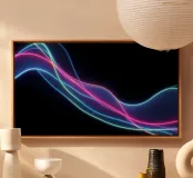 Questa opera d'arte presenta linee fluide e vibranti nei toni del rosa, del blu e del viola su uno sfondo scuro, creando un disegno astratto ipnotico perfetto per i progetti artistici.