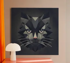 Raffigurazione artistica di un gatto in stile astratto con superfici colorate - giocosa, moderna e piena di espressività. Motivo del gatto in tecnica geometrica a blocchi di colore Colori armoniosi, caldi e vivaci Interpretazione contemporanea di un classico degli animali Ideale per gli amanti degli stili artistici moderni Espressivo, creativo e versatile