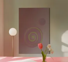 Motivo circolare astratto e dinamico in rosa e giallo tela