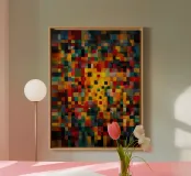 Quest'opera d'arte, che ricorda gli studi sui colori di Johannes Itten e i quadrati di Paul Klee, è un omaggio alla pura forza espressiva del colore. La composizione di innumerevoli quadrati crea un affascinante bagliore dal centro che sfuma in toni più scuri e ricchi ai bordi. È un magistrale gioco di contrasti e transizioni armoniose che dimostra in modo impressionante i principi della teoria del colore Bauhaus. Una dichiarazione energica che riempie ogni ambiente di calda intensità e incoraggia la riflessione sulla percezione visiva.