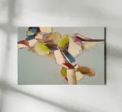 Quest'opera d'arte presenta un gioco armonioso di aree di colore organico nelle calde tonalità della terra, nei delicati colori pastello e nel profondo blu scuro. Le morbide transizioni e le chiare linee colorate creano un motivo moderno e astratto che irradia calma ed eleganza. Ideale come decorazione murale contemporanea, dona stile e leggerezza a qualsiasi ambiente.