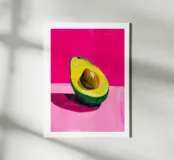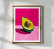 Portate un'esplosione di colore e modernità nella vostra cucina con questo poster di avocado su uno sfondo rosa brillante. Quest'opera audace, con le sue texture ricche e i suoi contrasti vibranti, è perfetta per gli appassionati di arte contemporanea e di decorazioni originali. Ideale per ravvivare le pareti di una cucina o di una zona pranzo, questa illustrazione aggiunge un tocco fresco e creativo alla vostra casa. Una decorazione murale unica per trasformare la vostra stanza in uno spazio vibrante e accogliente.