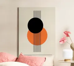 Bauhaus Circles Abstract Print - Arte nera, arancione e grigia tela