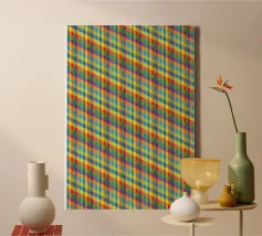 Un audace disegno geometrico caratterizzato da sottili strisce verticali nei ricchi toni del rosso, blu, verde, rosa, giallo, arancione e beige caldo. Il motivo crea un senso dinamico di movimento con un sottile effetto 3D, mescolando contrasti di colore giocosi e ritmo direzionale. Ispirato all'estetica Bauhaus, questo design di grande impatto conferisce un'energia vibrante e uno stile pulito e moderno all'arredamento della casa, agli accessori, all'abbigliamento e a molto altro ancora.