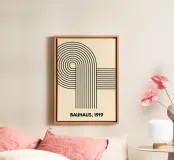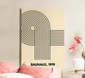 Questa stampa ispirata alla Bauhaus presenta un sorprendente motivo curvilineo nei classici colori bianco e nero, offrendo un design dinamico ma minimalista. Le forme geometriche e fluide conferiscono energia e raffinatezza a qualsiasi spazio, rendendolo perfetto per chi apprezza il modernismo e l'arte astratta. Questo pezzo cattura l'essenza dei principi Bauhaus con un tocco contemporaneo, ideale per aggiungere un tocco artistico ed elegante alla casa o all'ufficio.