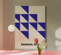 Un vibrante poster astratto in stile Bauhaus con un'audace composizione angolare di triangoli e blocchi geometrici. Il disegno utilizza una tavolozza ad alto contrasto di arancione bruciato (o terracotta) e di un bianco pulito e cremoso, formando un motivo dinamico ad incastro. Questa stampa incarna perfettamente la natura strutturata ma espressiva del movimento modernista. Il poster è un download digitale di qualità superiore fornito a 7000x5000 pixel, 300 dpi, che garantisce una nitidezza eccezionale e una riproduzione ricca di colori per un'opera d'arte di alta qualità in qualsiasi spazio contemporaneo o vintage.