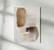 Questa opera d'arte astratta utilizza i toni terrosi del beige, del marrone e del bianco per creare una composizione armoniosa e moderna. Le pennellate e le tecniche a spatola sono utilizzate per creare forme fluide e linee eleganti che enfatizzano la texture. Il design minimalista invita alla riflessione e all'ispirazione creativa, mentre gli elementi geometrici sottolineano l'estetica contemporanea.