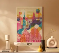 Una celebrazione audace e grafica di Bruxelles, resa attraverso una geometria pulita e un color blocking deciso. L'iconica architettura civica si erge al centro della composizione, incorniciata da nuvole stratificate e forme urbane semplificate che conferiscono alla scena ritmo, equilibrio e chiarezza visiva. Le silhouette decise e i contrasti giocosi catturano il carattere della città senza ricorrere a dettagli intricati.