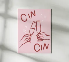 Brindate con questa gioiosa opera d'arte di ispirazione rétro che celebra i brindisi globali! Con la parola "Cheers" in un mix di lingue vivaci, Cin Cin, Kanpai, Salute, Proost, Salud, questo disegno colorato è ambientato in un'audace tavolozza di blu, rosso, rosa e arancione su un morbido sfondo avorio. Dettagli decorativi come stelle, bordi a scacchi colorati e due bicchieri da vino minimalisti in stile keyline aggiungono un giocoso tocco vintage. Perfetto per cucine, bar, angoli cocktail o anche per ricettari e strofinacci, questo pezzo porta buone vibrazioni, buona compagnia e una spruzzata di buon umore!