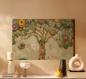 L'albero della vita Art Nouveau combina forme astratte e toni terrosi con accenti floreali per creare una rappresentazione elegante e stimolante della natura. Questo motivo artistico conferisce un tocco artistico a qualsiasi arredamento.