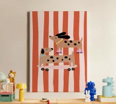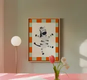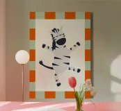 Scopri la vivace stampa su tela "Zebra Danzerina", perfetta per arredare con stile la cameretta dei più piccoli. Questo design divertente e colorato porterà gioia e allegria nel loro spazio, creando un ambiente accogliente e stimolante.