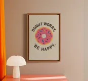 Ciambella con "Donut Worry Be Happy" (Non preoccuparti, sii felice) tela