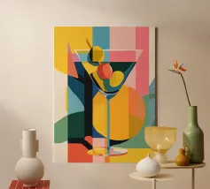 "Grape Array: Diversity in a Glass" presenta una vivace collezione di grappoli d'uva all'interno di un elegante bicchiere da vino, che simboleggia l'armonia nella diversità. Questo pezzo di grande effetto celebra la bellezza della varietà e dell'unità attraverso i colori della natura.