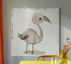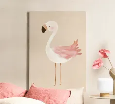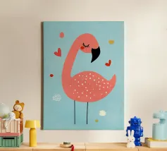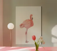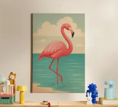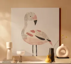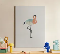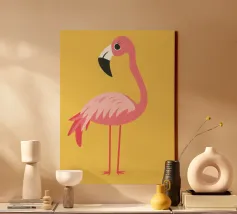 Fenicottero in piedi su sfondo semplice con design giocoso tela