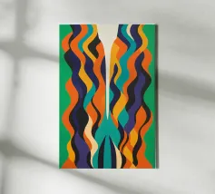 Un audace motivo astratto con un tocco di energia dinamica che simboleggia il movimento e la fluidità. Colori vivaci che evocano temi come l'acqua, la vita e il movimento. Una fusione innovativa di tradizione e modernità per interni contemporanei e minimalisti. Un linguaggio visivo unico che supera i confini culturali.