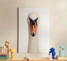 Questa accattivante opera d'arte presenta un ritratto iperrealistico e frontale di un emu catturato su un nitido sfondo bianco. I dettagli delle piume, gli espressivi occhi color ambra e il lungo collo elegante conferiscono all'opera un'estetica moderna e sorprendente. La sua composizione minimale e pulita lo rende un'affermazione audace per gli interni contemporanei, aggiungendo personalità e fascino. Perfetto per gli amanti degli animali, per gli arredi ispirati alla natura o per chiunque cerchi una stampa d'arte unica e accattivante.