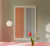 Una composizione geometrica moderna caratterizzata da linee parallele e blocchi strutturati.