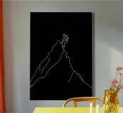 Lo spirito di avventura con questo disegno minimalista di un alpinista che si arrampica. Un'opera dinamica di arte astratta moderna che simboleggia la determinazione e la forza nella sua forma più semplice.