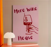 More Wine Please Illustrazione minimale in rosso e rosa tela