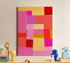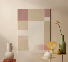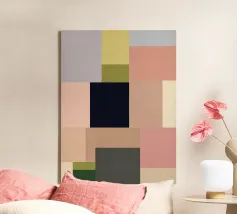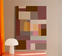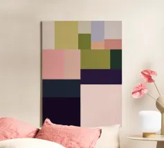 Arte astratta a blocchi di colore. Rettangoli organici dalle linee irregolari nelle tonalità dell'oliva, della malva e del crema formano un'opera d'arte a blocchi di colore di grande effetto per interni moderni.
