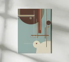 Forme geometriche nei colori rosso ruggine, arancione e marrone si fondono senza soluzione di continuità. Un astratto senza tempo che valorizza gli interni con un'estetica di metà secolo, scandinava o bohémien.