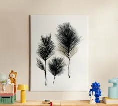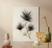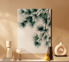 A refined botanical study of pine needles rendered with clean ink-like linework and subtle neutral accents. This minimalist piece merges natural form with graphic precision, ideal for modern interiors, forest-inspired spaces, or collectors of organic simplicity.