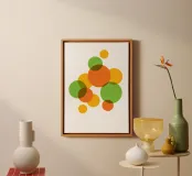 Una giocosa esplosione di colore ispirata all'estetica moderna di metà secolo. Retro Candy Vibes riunisce le calde tonalità dell'arancio e del lime in una composizione minimalista che sembra allo stesso tempo nostalgica e fresca, perfetta per chi ama un tocco di allegria nel proprio spazio.