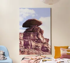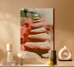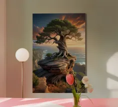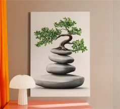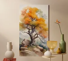 roccia in equilibrio sull'albero tela