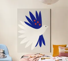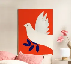Moderne Illustration mit friedvoller Symbolik: Eine weiße Taube mit Olivenzweig steht für Hoffnung, Harmonie und Zuversicht. Die verspielte Typografie, sanfte Blautöne und dekorative Formen verleihen dem Poster eine ruhige, positive Ausstrahlung. Ideal für Wohnzimmer, Schlafzimmer oder Meditationsräume – perfekt für alle, die sich nach Balance und innerer Ruhe sehnen. Zeitgenössische Illustration im modernen Art-Stil mit spiritueller Leichtigkeit.