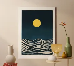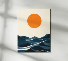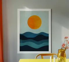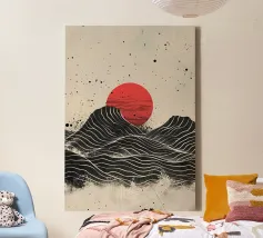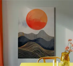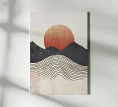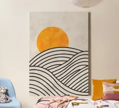 sole orizzonte onde punti texture linee elementi astratti tela