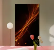 Linee arancioni brillanti si intrecciano su uno sfondo scuro, creando un'atmosfera calda e accattivante, perfetta per uno sfondo di cellulare. Ideale per chi cerca un design elegante.