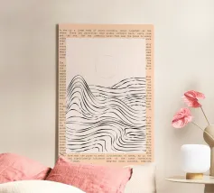 Disegno del mare e delle onde in delicato grigio beige. Sopra, la scritta Waves.