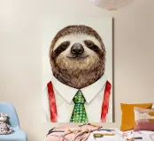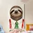 Un bradipo lento e costante, vestito in modo ordinato in ufficio, che porta con sé una calma sicurezza sul posto di lavoro.