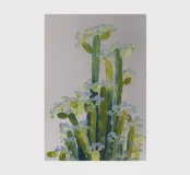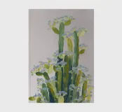 Questa delicata opera d'arte raffigura cactus verdi con fiori azzurri, dipinti in tenui colori pastello. La combinazione di toni morbidi di beige e verde conferisce al motivo un'atmosfera calda e naturale. Ispirato alla botanica del deserto, il risultato è un quadro vegetale minimalista con una leggerezza estiva.