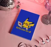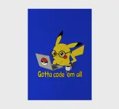 Un Pikachu adorabilmente nerd, con gli occhiali e concentrato sul suo laptop, con la frase scherzosa "Gotta code 'em all". Questa opera d'arte fonde l'universo dei Pokémon con il mondo della programmazione, creando un gioco di parole perfetto per gli sviluppatori e gli appassionati di cultura pop. Ideale per programmatori, giocatori e collezionisti che amano combinare umorismo, nostalgia e tecnologia nel loro stile.