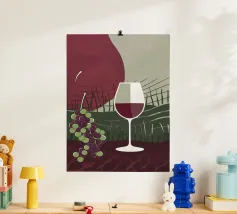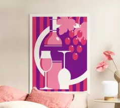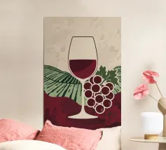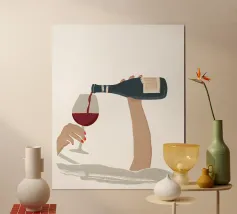 "A Sip of Reflection" è un sottile tributo alla semplicità e alla bellezza delle cose semplici. Toni pacati e linee moderne si uniscono per creare un'opera d'arte rilassante e sofisticata. Questo design è ideale per chi cerca un equilibrio tra uno stile minimalista e il gusto per il buon vino. Perfetto per una sala relax o una cucina, invita a rallentare e ad apprezzare i momenti di tranquillità, valorizzando lo spazio con una palette di colori rossi tenui e armoniosi. Un must per gli eleganti amanti del vino.