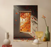Un momento sospeso nel tempo: una finestra incorniciata nella pietra, foglie autunnali che scivolano dolcemente all'interno e la luce del sole che traccia ombre delicate sulla parete. "Autumn Window" è allo stesso tempo minimalista e coinvolgente, in grado di bilanciare il calore dei colori stagionali con il ritmo tranquillo delle foglie che cadono. Perfetto per interni moderni, per accenti stagionali o come pezzo contemplativo che cattura la fugace poesia dell'autunno.