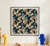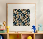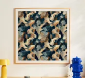 Un moderno motivo mimetico astratto con forme fluide in stile acquerello nei colori blu navy, grigio ardesia, pesca, marrone e crema. Questa rivisitazione artistica della mimetica tradizionale combina motivi di ispirazione militare con un'estetica morbida e acquerellata per un look contemporaneo. Perfetto per gli amanti del camo, per gli appassionati di motivi astratti, per i fan dello stile militare moderno e per tutti coloro che apprezzano la fusione di motivi tattici con la morbidezza artistica dell'acquerello.
