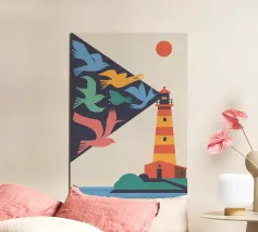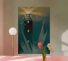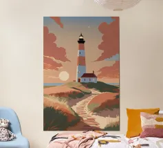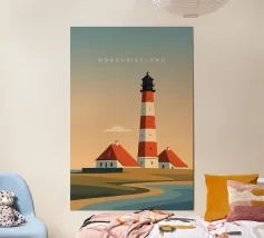 Una magistrale astrazione del faro di Hörnum, con forme geometriche stratificate che suggeriscono profondità e movimento. Il faro stesso è incorniciato da uno sfondo strutturato di elementi angolari, che ne esaltano l'importanza all'interno della composizione. L'equilibrio tra ombra e luce, rosso e bianco, crea un'interpretazione visivamente accattivante di questa struttura storica. Questa moderna opera d'arte costiera reimmagina il simbolo di Sylt in una luce fresca e contemporanea.