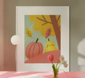 Le allegre illustrazioni presentano zucche e pere con espressioni simpatiche in una calda atmosfera autunnale.