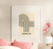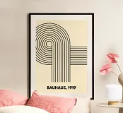 Questa stampa ispirata alla Bauhaus presenta un sorprendente motivo curvilineo nei classici colori bianco e nero, offrendo un design dinamico ma minimalista. Le forme geometriche e fluide conferiscono energia e raffinatezza a qualsiasi spazio, rendendolo perfetto per chi apprezza il modernismo e l'arte astratta. Questo pezzo cattura l'essenza dei principi Bauhaus con un tocco contemporaneo, ideale per aggiungere un tocco artistico ed elegante alla casa o all'ufficio.